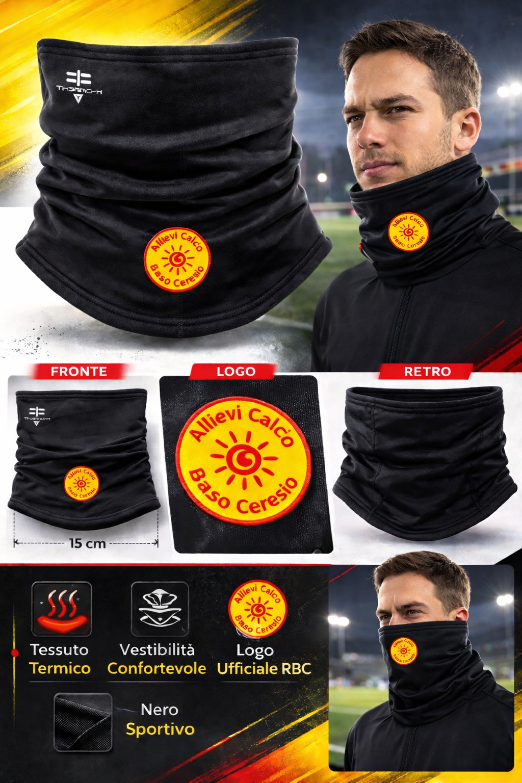 Accessorio ufficiale del Raggruppamento Allievi Calcio Basso Ceresio, coordinato con il kit invernale (cappello e guanti).